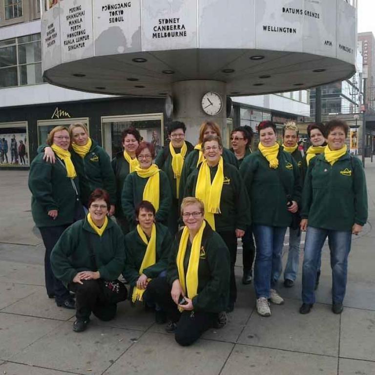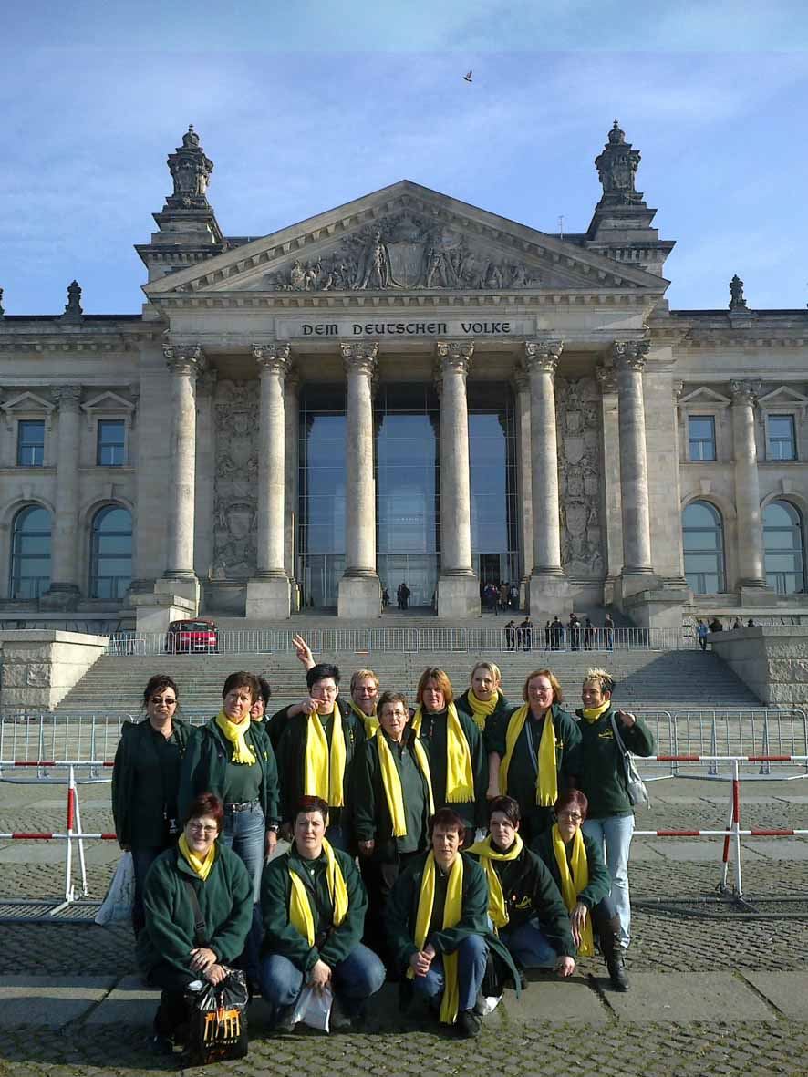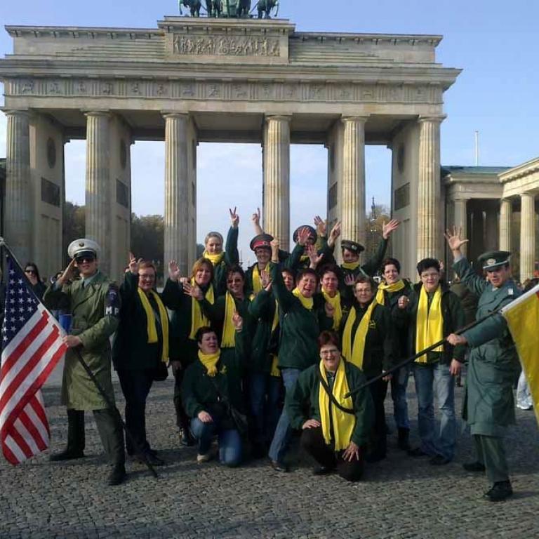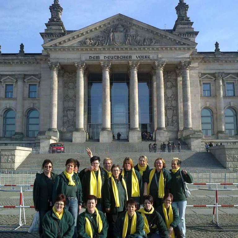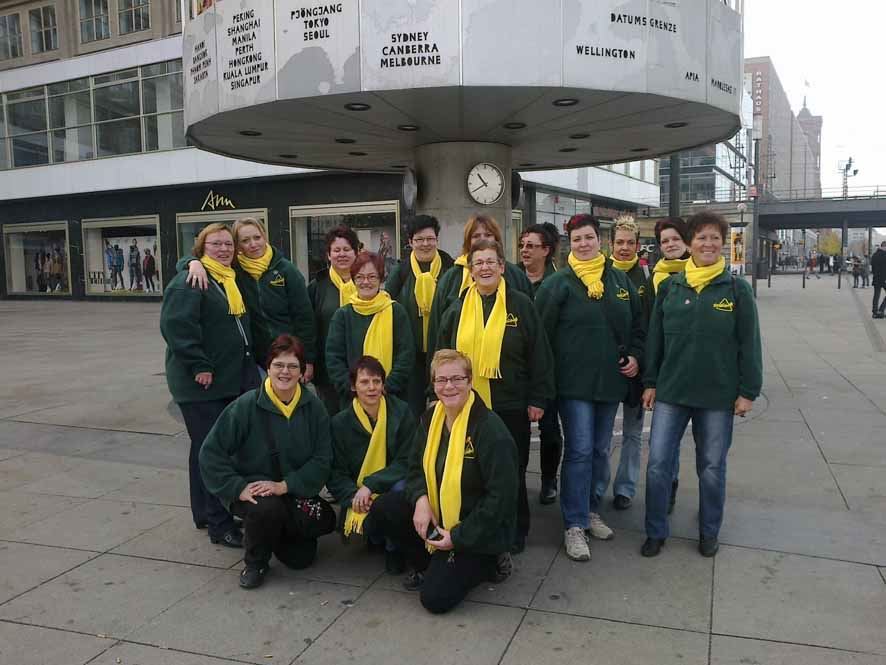 Der nächste Morgen begann mit einem typischen Ost- Frühstück im Hotel. Nachdem sich alle gesättigt hatten, ging es auf zu einer Stadtrundfahrt. Sehr interessiert hörte und sah sich die 2. Damenkompanie die Geschichte Berlins an. Am Brandenburger Tor stiegen die Damen aus, um sich vor Ort alles genau anschauen zu können. Unter anderem das Brandenburger Tor, das Hotel Adlon, den Reichstag, alles war dabei. Weiter ging es danach mit der Stadtrundfahrt, vorbei an vielen Botschaften, dem Kanzleramt, der Siegessäule und auch dem Schloss Charlottenburg. Nächster Ausstieg der Damen war dann der Potzdamer Platz. Nach einer kleinen Stärkung fuhren sie dann zum Bahnhof und zurück nach Hause.