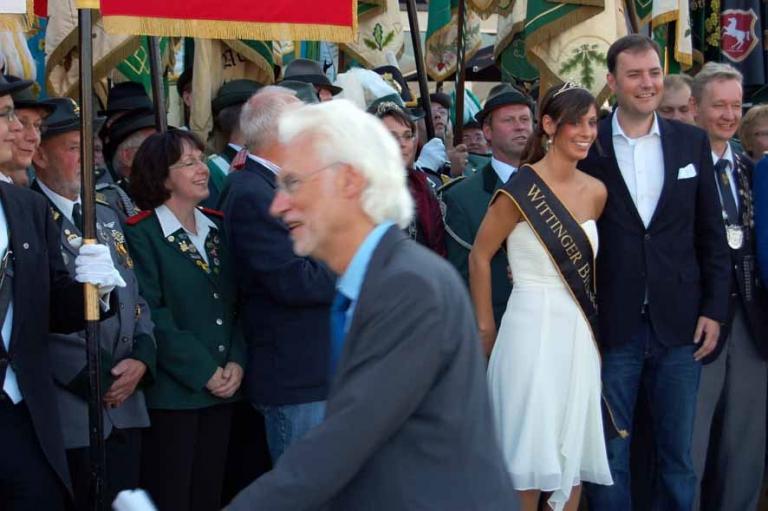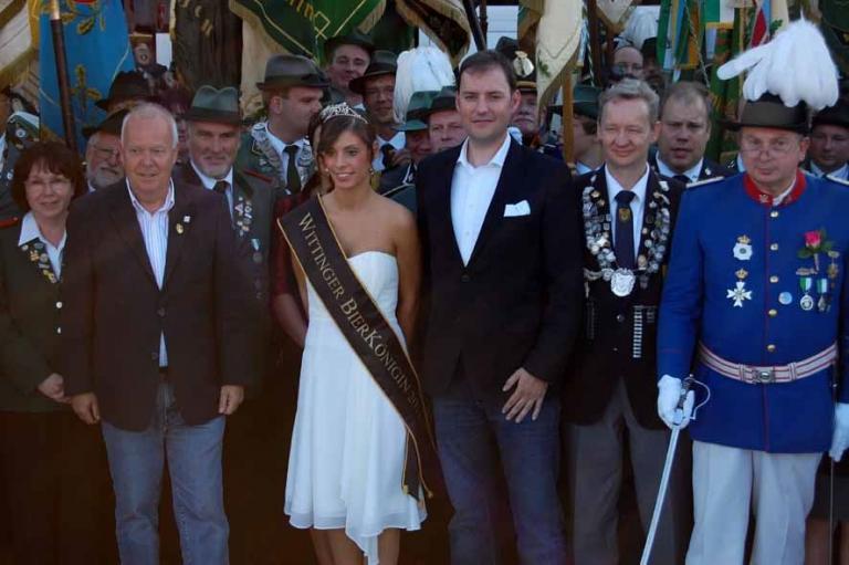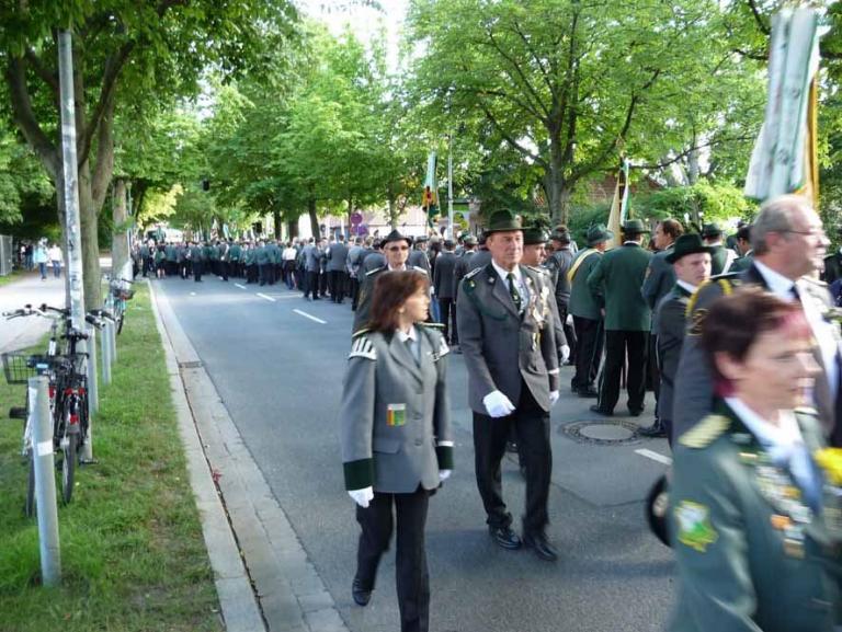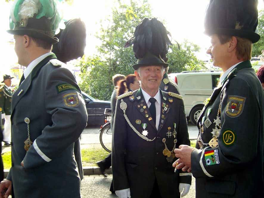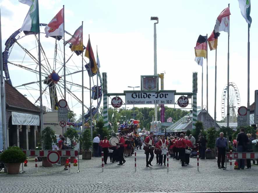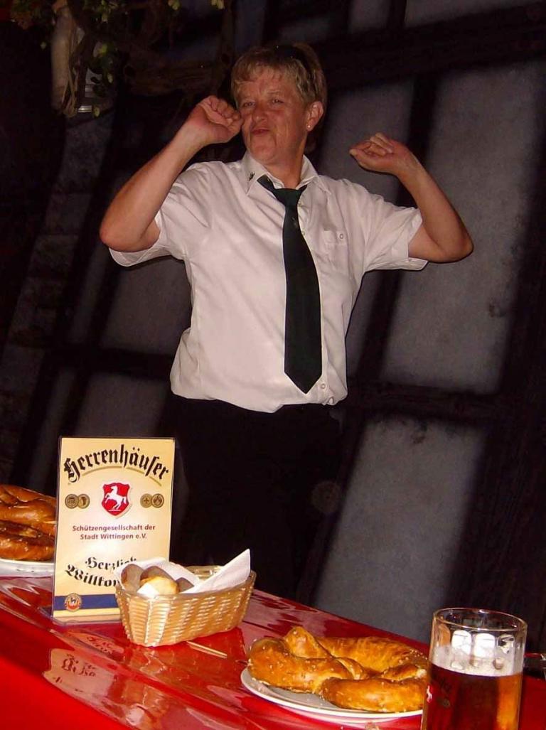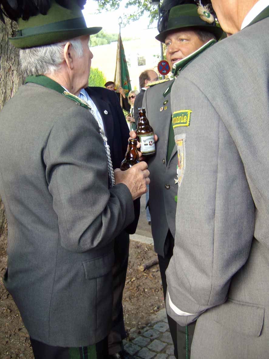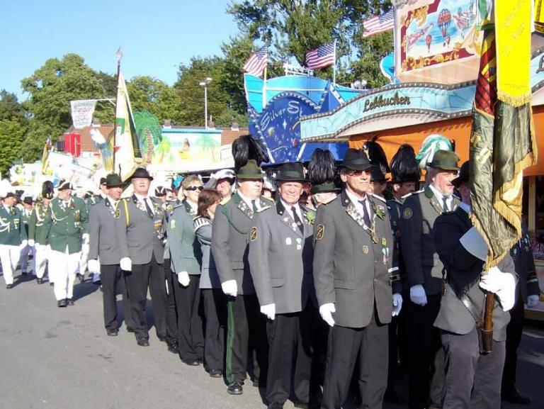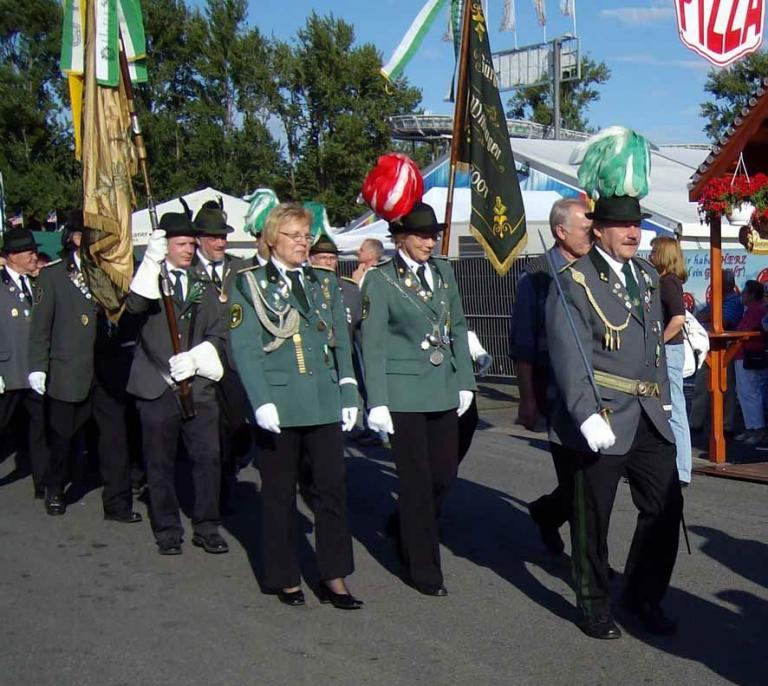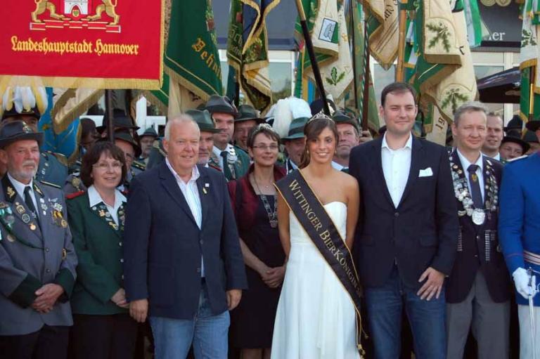Die Privatbrauerei Wittingen, zu der auch die Herrenhäuser Brauerei gehört, hatte zum Tag der Regionen ins Festzelt "Zum Herrenhäuser" eingeladen... 1200 Schützen aus dem Umfeld der Privatbrauerei folgten diesem Ruf. Eigens hierzu wurde die Bruchmeisteralle in der Landeshauptstadt für die Ankunft der Busse freigehalten. Nach dem Antreten vor dem Haupteingang folgte ein Ummarsch über den Festplatz und der Einmarsch ins Festzelt. Jeder Verein hatte dort seine reservierten Plätze. Die Tische waren vorbereitet und mit einem "bierbegleitendem Imbiss" ausgestattet. Schon nach den ersten Liedern der Bayrischen Stimmungskapelle "Die Erdinger" standen die Schützen auf den Bänken und tanzten vor der Bühne. Nach dem nächtlichen Feuerwerk hieß es dann Abschied nehmen, aber nicht, bevor noch einmal über den Festplatz gebummelt wurde.