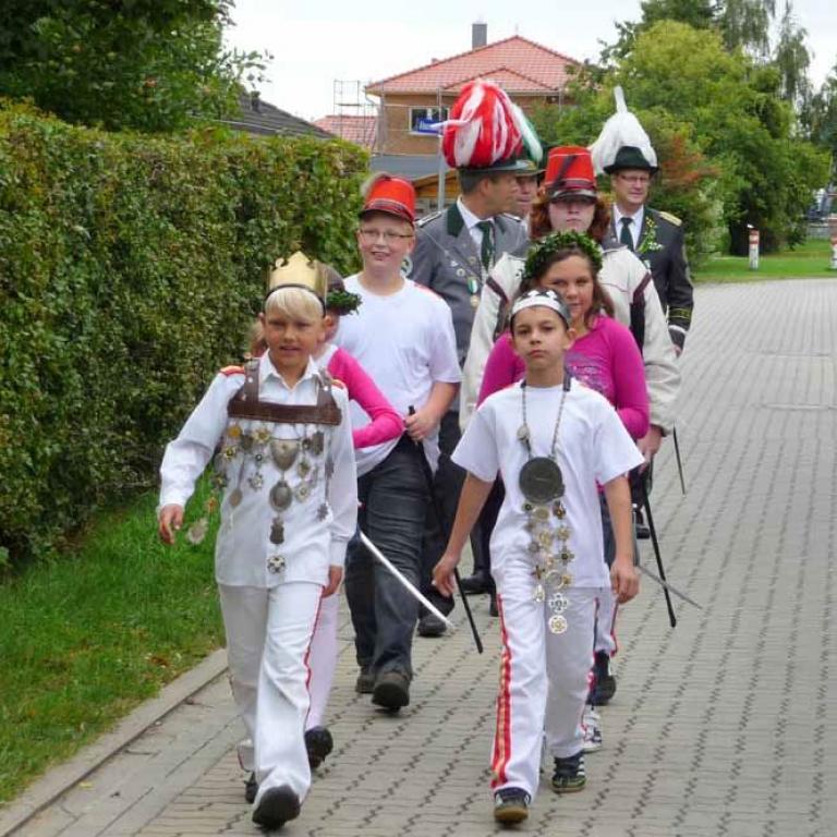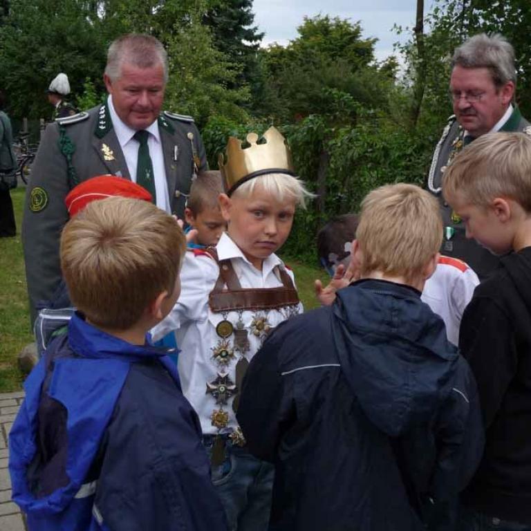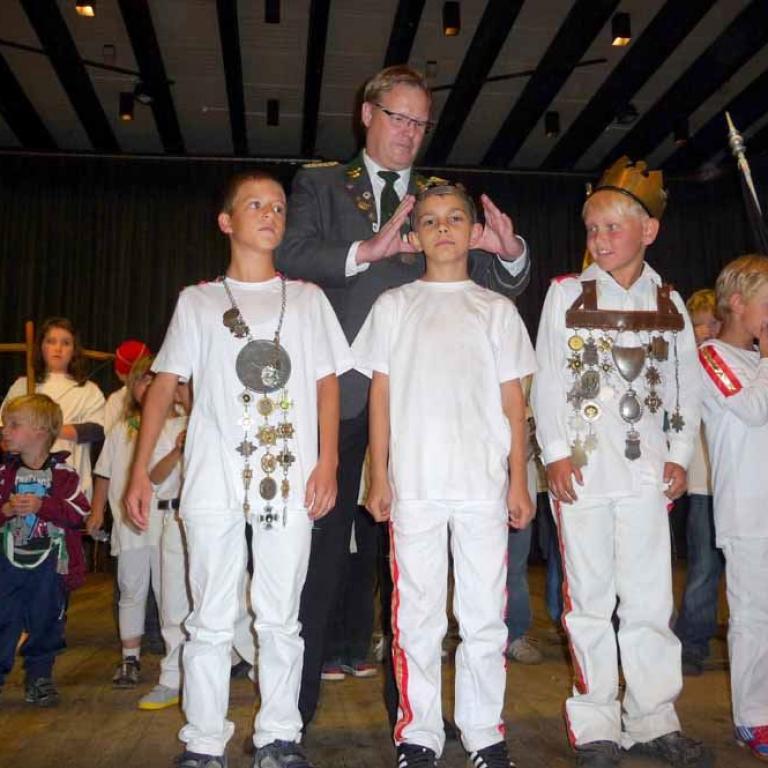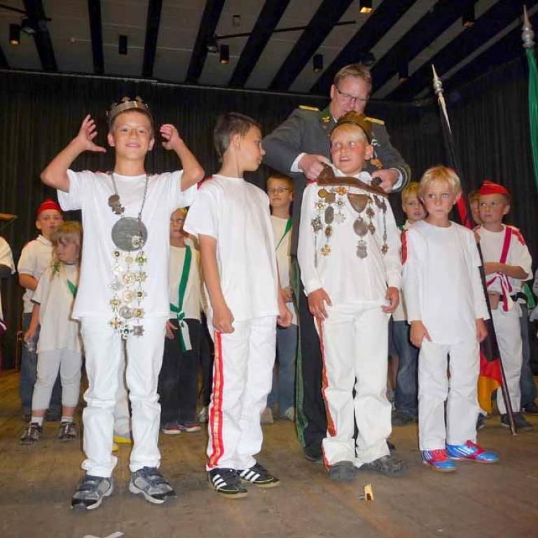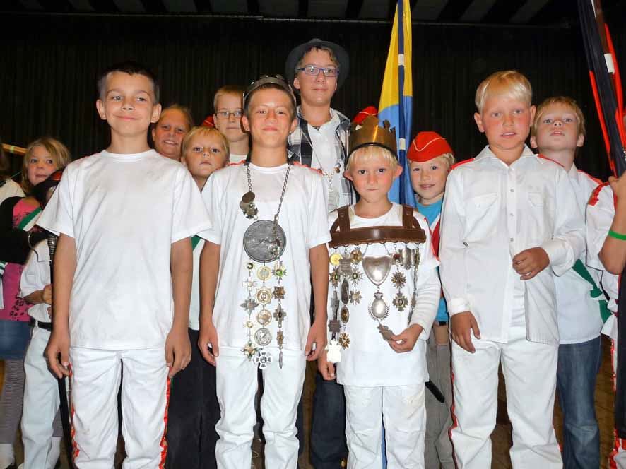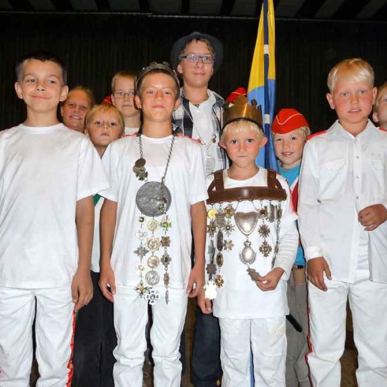 Mit einem Teiler von 32 wurde Mika Bammel zum Kinderschützenkönig proklamiert. Ihm folgte Paul Heitmann mit einem Teiler von 34 und ist somit Kronprinz. Marlon Radke traf das Ziel mit einem Teiler von 58 und erhielt damit das Amt des Adjutanten. Außerdem darf er den Bauernschänke-Pokal bis zum nächsten Kinderschützenfest sein Eigen nennen. Das Amt des Obersten bekleidet Xenia Beckmann, Altschaffer wurde Paul Runge.