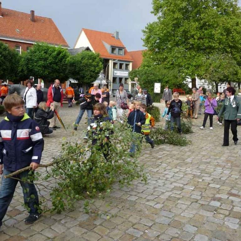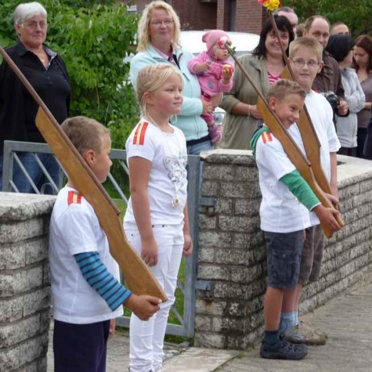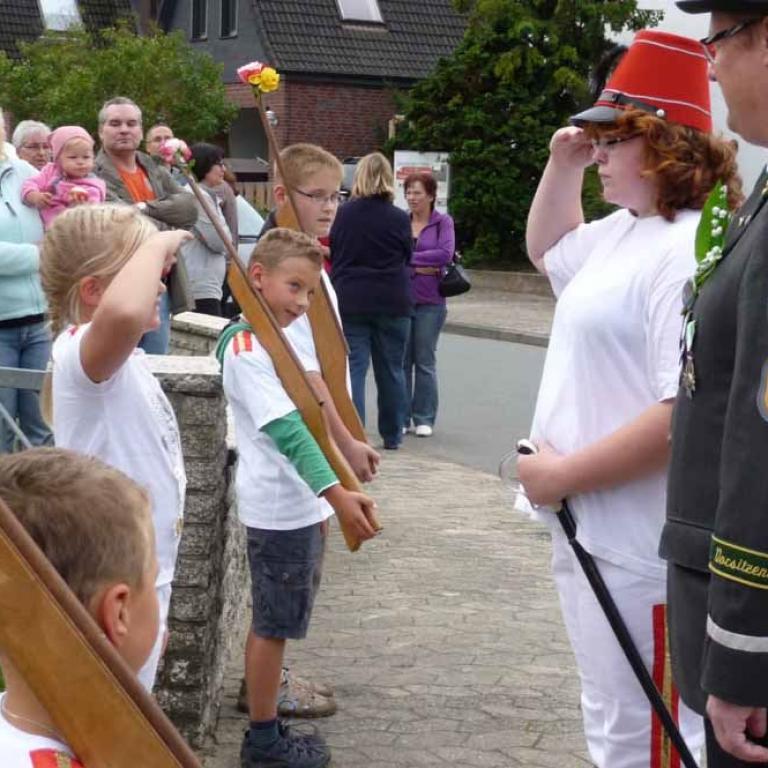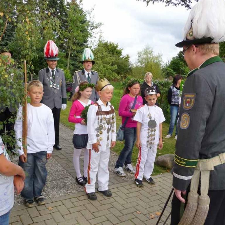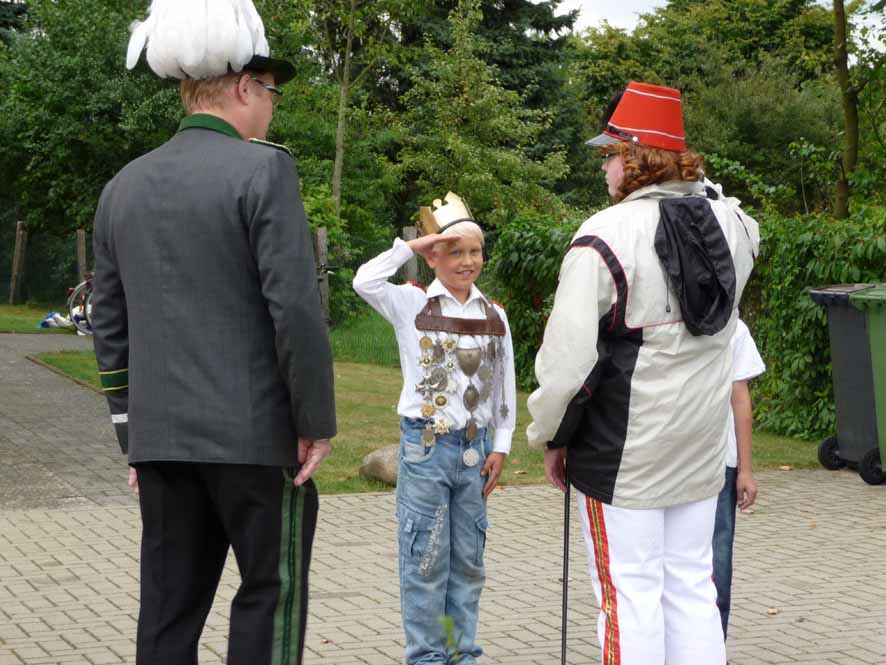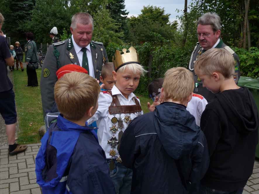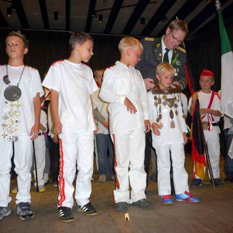 Mit einem Teiler von 32 wurde Mika Bammel zum Kinderschützenkönig proklamiert. Ihm folgte Paul Heitmann mit einem Teiler von 34 und ist somit Kronprinz. Marlon Radke traf das Ziel mit einem Teiler von 58 und erhielt damit das Amt des Adjutanten. Außerdem darf er den Bauernschänke-Pokal bis zum nächsten Kinderschützenfest sein Eigen nennen. Das Amt des Obersten bekleidet Xenia Beckmann, Altschaffer wurde Paul Runge.
