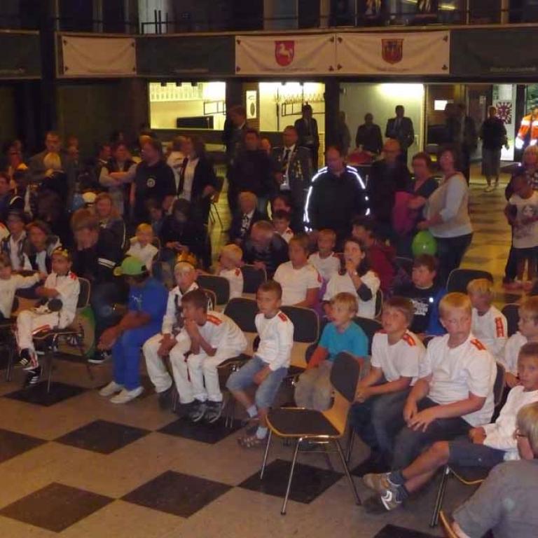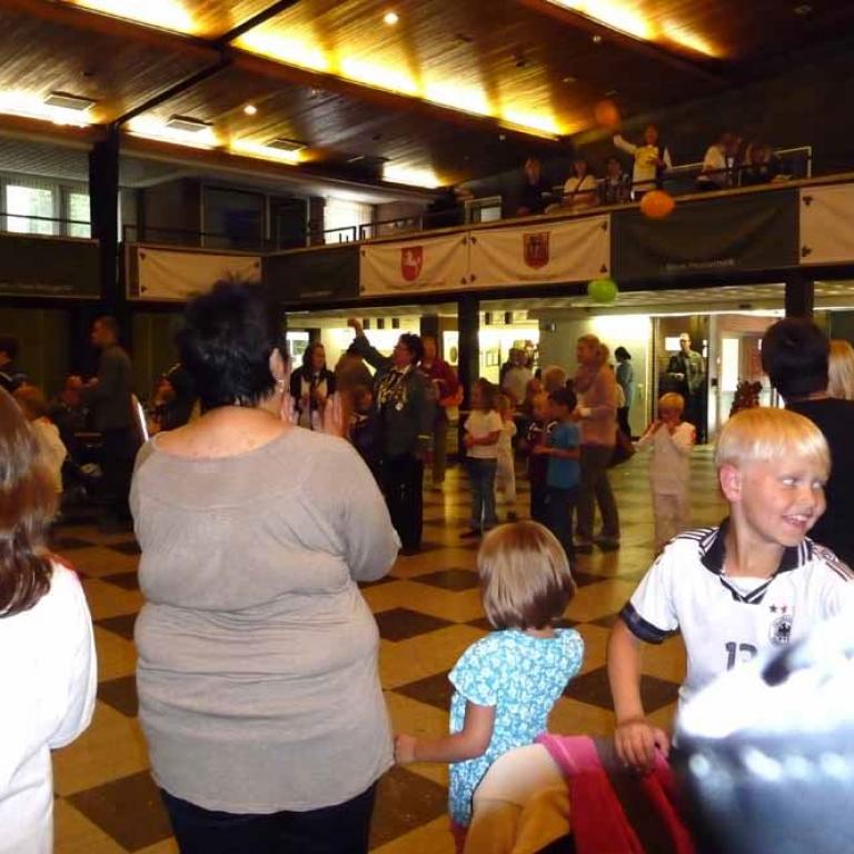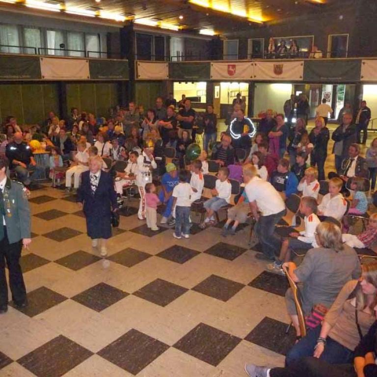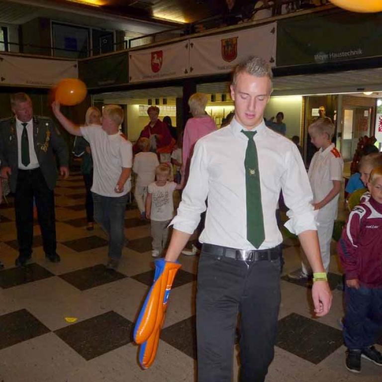 Bei der allerletzten Proklamation der Schützensaison wurde der Titel des "Stadhallenkönigs" vergeben. Diesen Titel errang Mirko Kummert mit einem Teiler von 31,5. Ihm folgten Klaus-Dieter Neumann (T 41,0) und Jörg Friedrichs (T 76,2). Miko Kummert ist in diesem Jahr besonders treffsicher. Denn beim Schützenfest an Pfingsten errang er schon den Titel des Jungschützenkönigs.