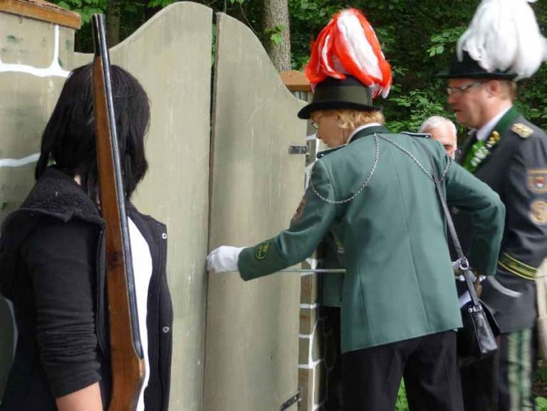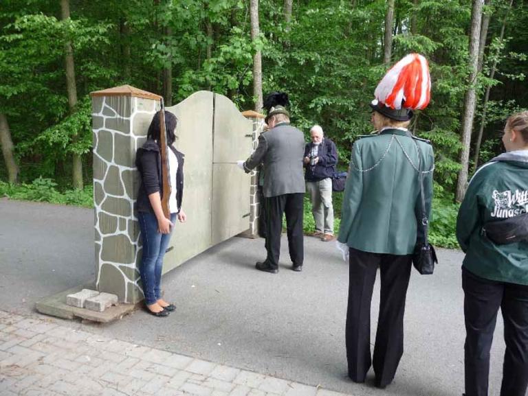 Das Tor zur Nachtweide wurde dieses Jahr nicht mit dem Schlüssel, sondern mit Hilfe des "Dietrichs" (Degen) von Uwe Schulze geöffnet! Majestät Christa Steinwachs, sowie