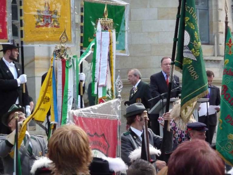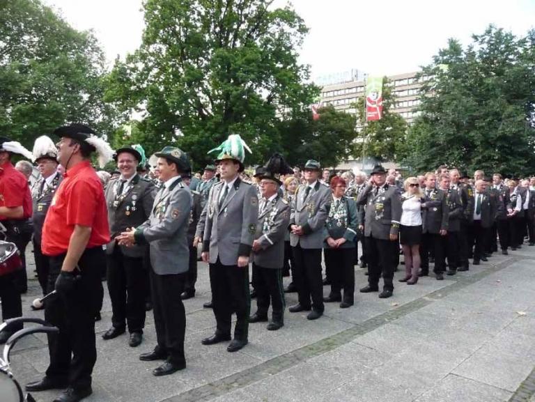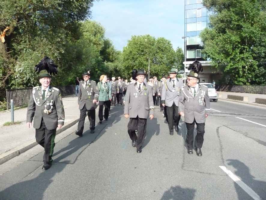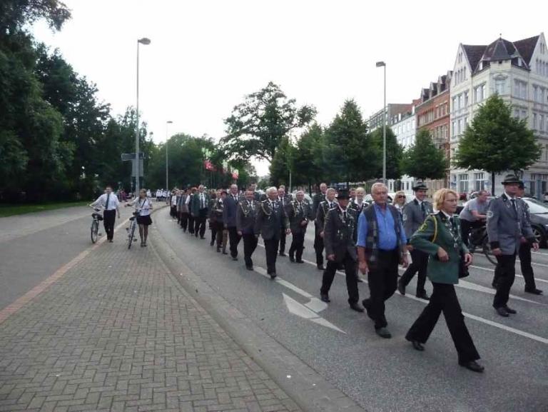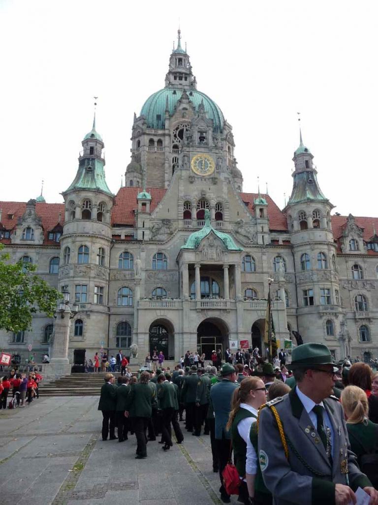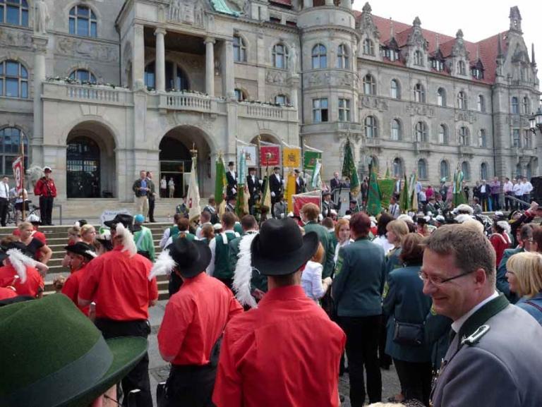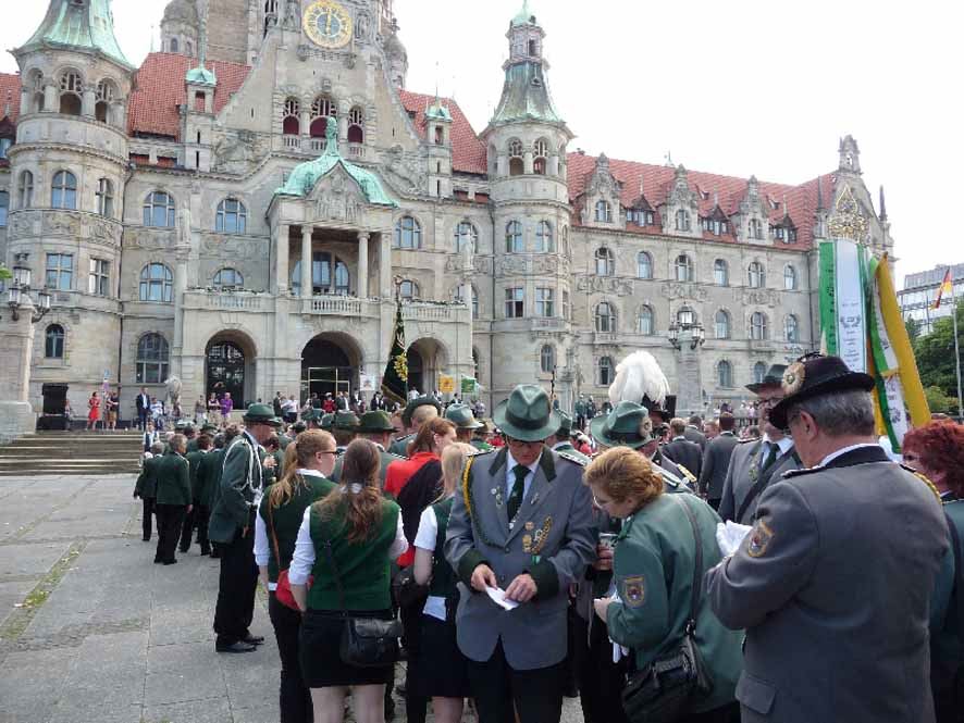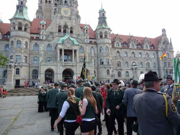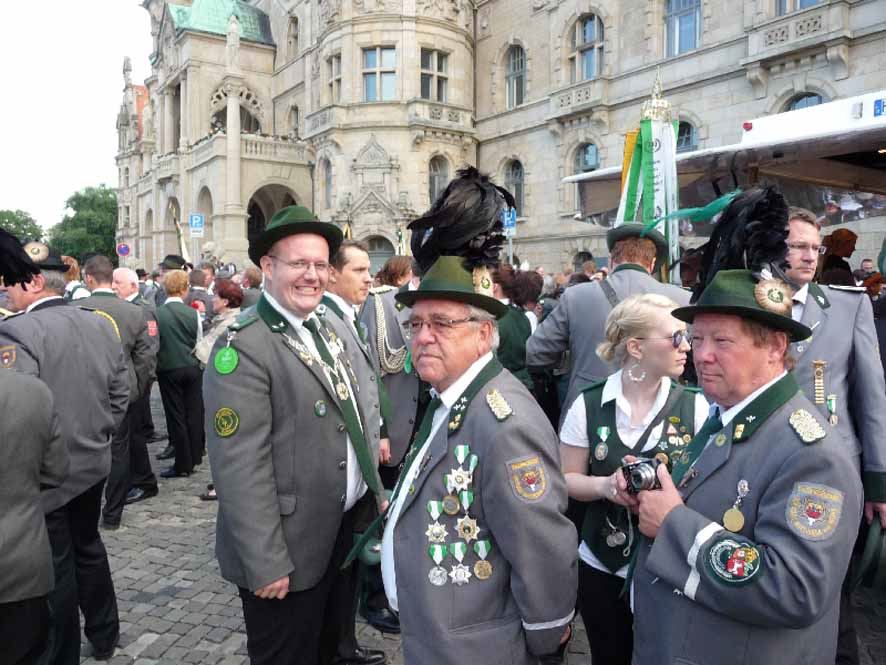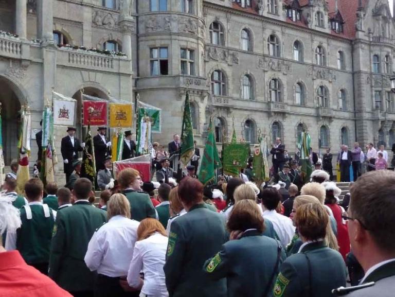 Nach der Anreise mit dem Bus trafen sich ca. 1000 Schützen aus dem Nordkreis vor dem Rathaus der Landeshauptstatt. Dort wurden die Schützenabordnungen durch den Oberbürgermeister der Stadt Hannover Stefan Weil und dem Geschäftsführer der Privatbrauerei Wittingen Christian Schulz-Hausbrand herzlich begrüßt. Vom Rathaus wurde dann in Begleitung von Musik- und Spielmannzügen zum Schützenplatz marschiert. Angeführt wurde der mehrere hundert Meter lange Umzug u.a. von den Fahnen der Vereine und auch Christian Schulz-Hausbrandt. Beim Einmarsch auf dem Festplatz bildeten die Besucher ein Spalier für die Schützen und spendeten großen Beifall. Auf dem Festzelt waren Plätze für alle Vereine reserviert. Bei einem Imbiss und Freigetränken kam der Abend mit der Musik der Oktoberfestkapelle "Die Erdinger" (bekannt auch vom Bockbierfest in Wittingen) schnell in Schwung. Den Abschluss des unvergesslichen Abends bildete für viele noch ein Rundgang über den Schützenplatz und das große Höhenfeuerwerk.