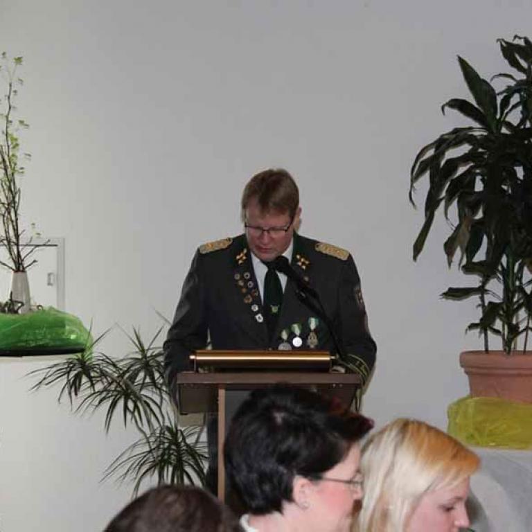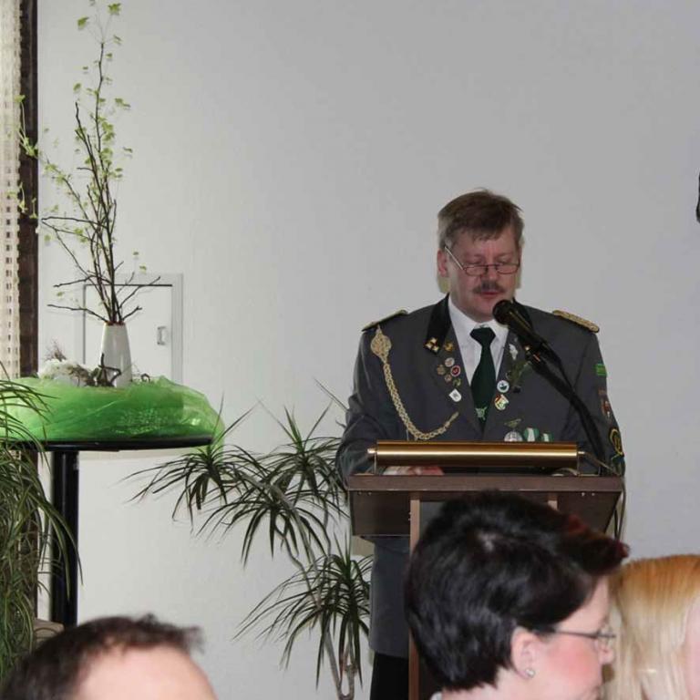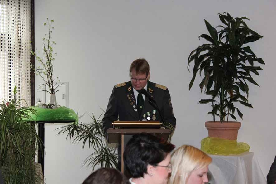 Der 1. Vorsitzende Uwe Schulze und Schießsportleiter Klaus Jübermann ließen das vergangene Schützenjahr noch einmal Revue passieren. Das Schützenfest 2012 mit unseren neuen Majestäten Thorsten Meyer und Mirko Kummert. Ein Dankeschön ging an alle, die das Bürgerfrühstück mit ihren Beiträgen unterstützen. Das Kinderschützenfest mit 29 Schüssen auf die Königsscheibe und neuem Angebot für die Besucher. Ein weiteres Highlight war der Besuch auf dem Schützenfest in Hannover, zu dem die Brauerei die Schützengesellschaft eingeladen hatte.