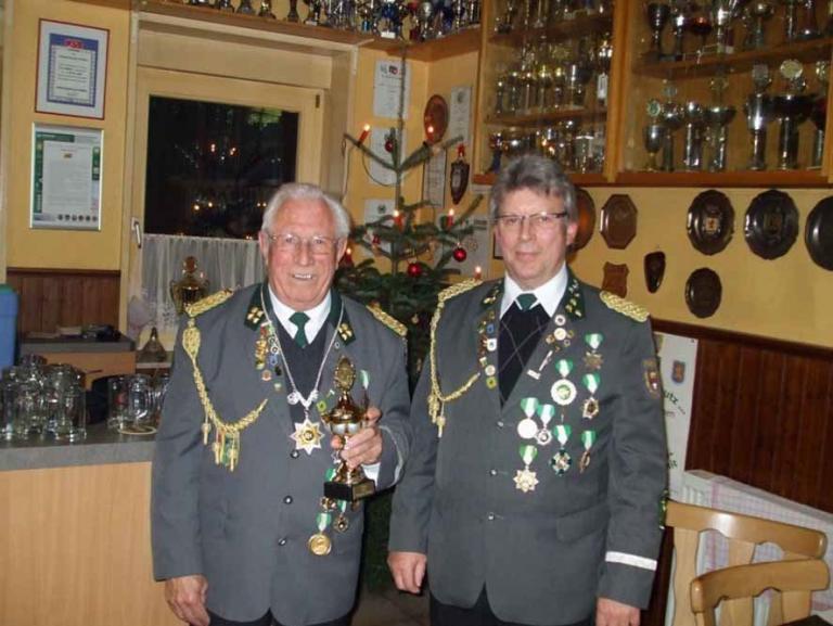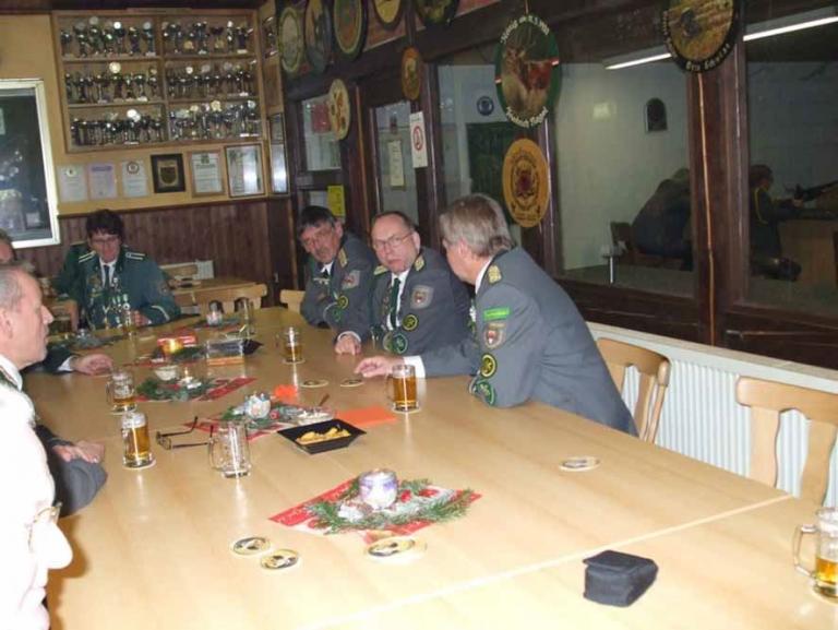 Majestät Frank Eschert und sein Adjutant Jörg Berlin hatten alle ehemalige Könige, den Vorstand der Schützengesellschaft und Gäste ins Schießhaus eingeladen und alles war hervorragend organisiert. Neben dem Wettkampf kam auch die Geselligkeit nicht zu kurz. Das weihnachtlich geschmückte Schießhaus lud zum verweilen ein und dank dem Helferteam waren alle bestens versorgt.