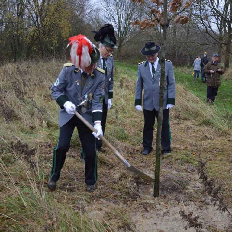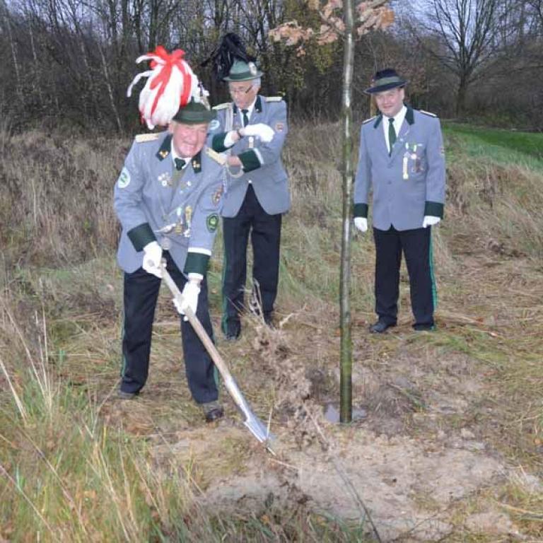 Auch die Pflanzung des stattlichen Baumes war hervorragend vorbereitet worden, so dass sich alle Anwesenden über diese würdige Fortsetzung der langen Tradition des Pflanzens einer Königseiche erfreuen konnten. Den Schützenwesen-unkundigen Lesern sei hierzu erklärt, dass alljährlich die Wittinger Schützenkönige mit dem Pflanzen einer Eiche nicht nur eine dauerhafte Erinnerung an ihre Regentschaft installieren, sondern auch allen Bürgern einen schönen Baumnachwuchs schenken.