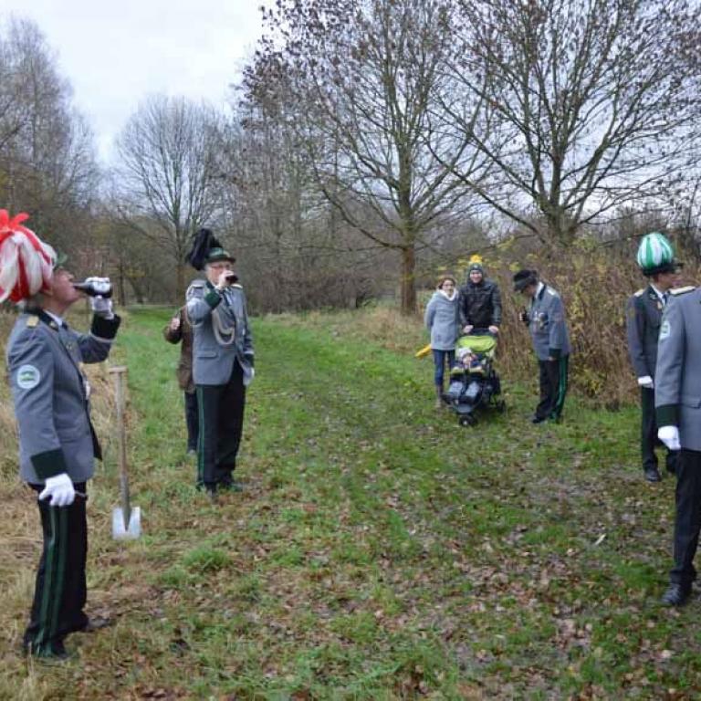 Nachdem Harald Fischer und sein Adjutant Klaus Müller den Baum wohl versorgt hatten, lud unser Schützenkönig die Teilnehmer der Pflanzaktion zu einem geselligen Ausklang ein, bei dem dann auch schon die Planung des in 2016 anstehenden Königsballes im Gespräch war, auf den sich Majestät Harald Fischer, seine 2.Kompanie und die Schützengesellschaft sehr freuen.