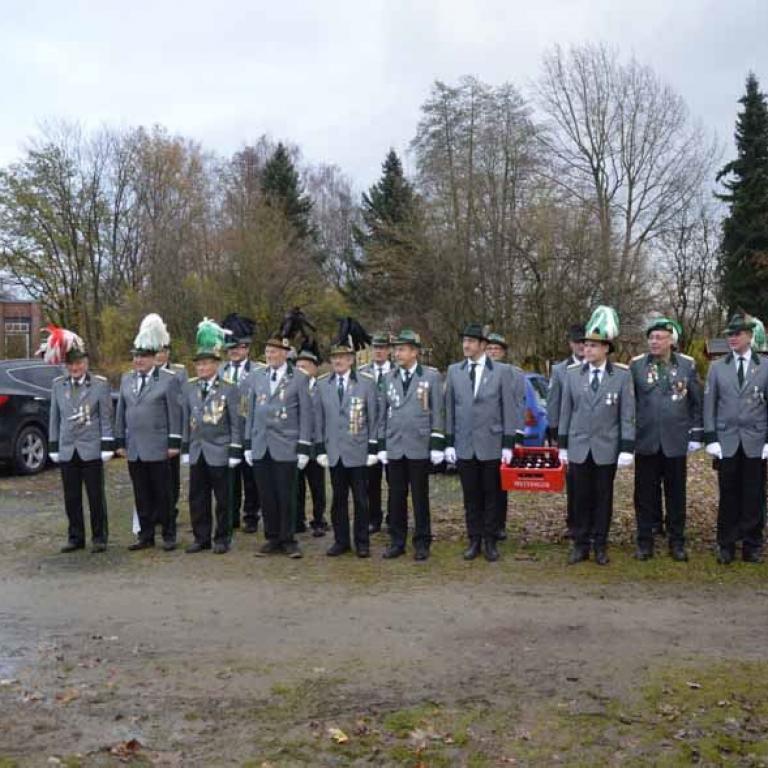 Der als allzeit frohgestimmt bekannte Schützenkönig hatte bei der Wahl des Zeitpunktes wieder einmal eine glückliche Hand, den die 2.Kompanie und ihre Gäste konnten eine regenfreie Stunde für die schwungvoll organisierte Zeremonie nutzen und mussten nur mit dem durchfeuchten Anmarschweg kämpfen.