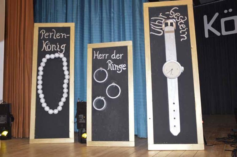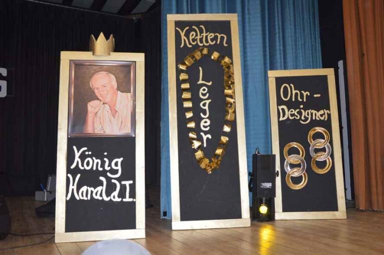 Die Aktiven der 2. Kompanie hatten bereits bei den ersten Vorbereitungen, dem Schmücken der Stadthalle, ein gutes Händchen bewiesen. Die Aufstellung der Rundtische in der aufgelockerten Form erwies sich als recht praktisch und der hübsche Tischschmuck sowie die sorgfältige Anordnung der Gedecke samt der Menü-Karten ergaben einen einladenden Anblick. Die Bühnendekoration zeigte in sehr origineller Weise die enge Beziehung unseres Schützenkönigs Harald I. zu Gold, Silber, Schmuck und Edelsteinen bis hin zu Uhren....