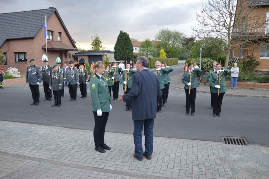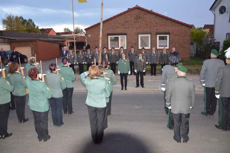 Der Spielmannszug und der Musikzug aus Hankensbüttel sowie die mehr als 70 Fackelträger aus den Reihen der Wittinger Schützen marschierten durch eine Gasse zwischen den Besuchern auf den Platz direkt vor der St. Stephanuskirche und nahmen dort Aufstellung. Kommandeur Uwe Schulze gab die Kommandos und meldete den Großen Zapfenstreich an die protokollarisch höchstrangigen Anwesenden: den amtierenden Schützenkönig Michael Spatz mit seiner Königin Silke Krüger und Adjutant Denis Jaworski sowie Landrat Dr. Andreas Ebel und Stadtbürgermeister Karl Ridder.