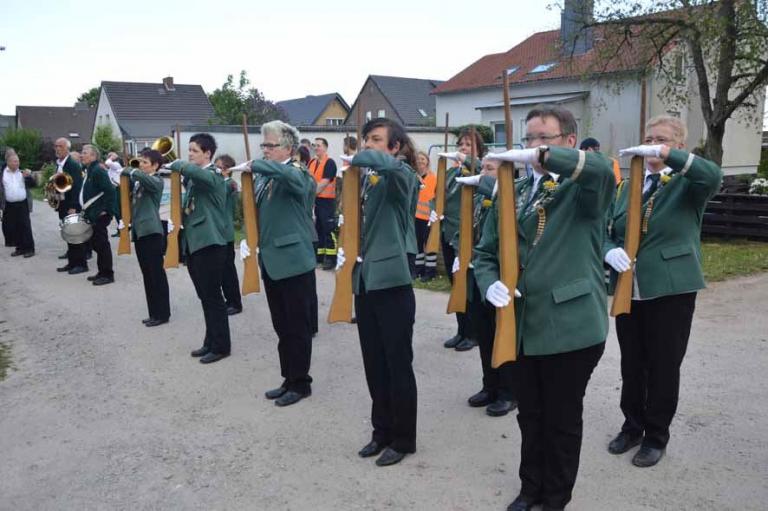 Mehrere hundert Zuschauer eine genauere Schätzung fiel im schwindenden Licht schwer wollten den Großen Zapfenstreich der Wittinger Schützengesellschaft miterleben. Die Zeremonie wurde zu einem feierlichen ersten Highlight des fünftägigen Jubiläumsschützenfestes.