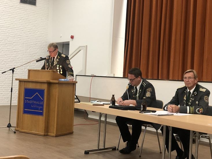 Nach der Begrüßung durch den 1. Vorsitzenden Uwe Schulze und dem Totengedenken richtete Ortsbürgermeister Matthias Rönneberg warme Worte an die versammelten Uniformierten. Auch er wünsche sich, dass das Schützenwesen in Wittingen wieder in Gang komme und sicherte die Unterstützung des Ortsrates zu.