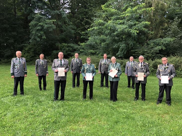 Nachdem gratuliert und auch die überfälligen Ehrungen, die aufgrund des Ausfalls des Schützenfestes noch anstanden, vorgenommen waren, ließen die Schützen den Nachmittag so gemütlich es mit Abstand ging, ausklingen.
