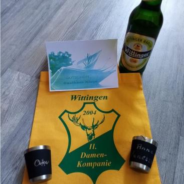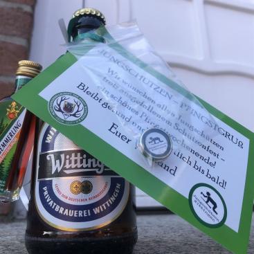 Die Jungschützen etwa freuten sich über einen neuen, selbstgestalteten Pin für Ihre Uniform, persönliche Grüße und einem entsprechenden Getränk. Die Mitglieder der 1. Jäger-Kompanie bekamen einen Teil der Produktpalette der Privatbrauerei Wittingen sowie Hausmachermettwurst aus dem Hause Friedrichs – ausgeliefert in der lang nicht mehr getragenen Uniform. Alle Mitglieder der 2. Damenkompanie erhielten neben ähnlichen Kleinigkeiten in einer extra entworfenen Tasche mit dem Kompaniewappen noch einen Gutschein für das Gasthaus Kluge. Die Schützinnen hoffen, dort bald geschlossen zu ihrem Kompanietag zusammenkommen zu können.