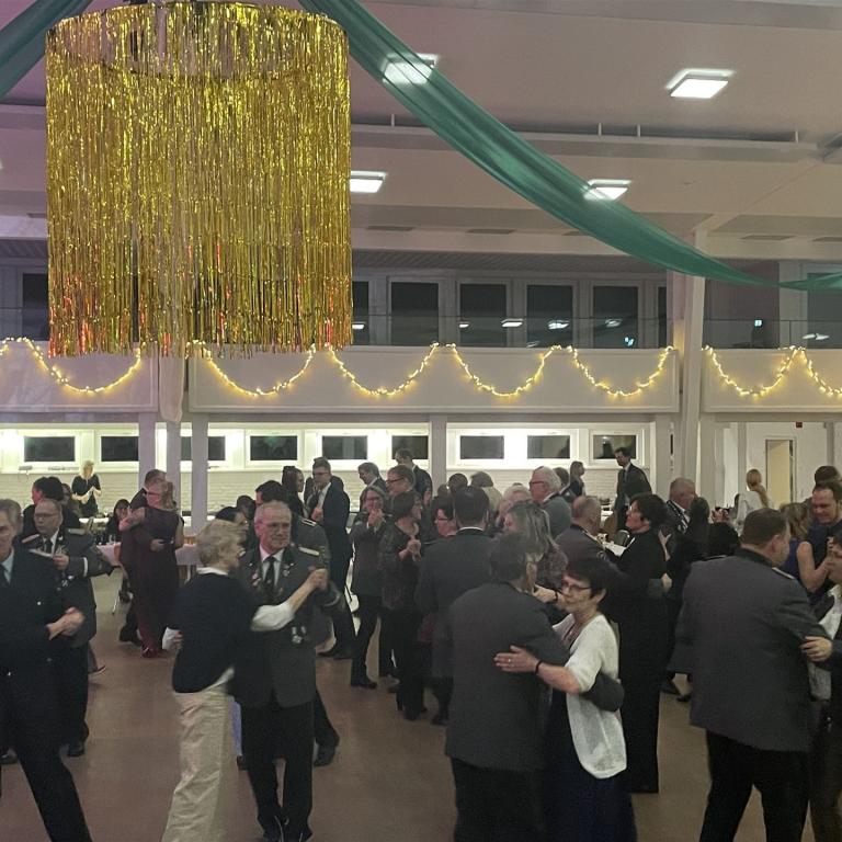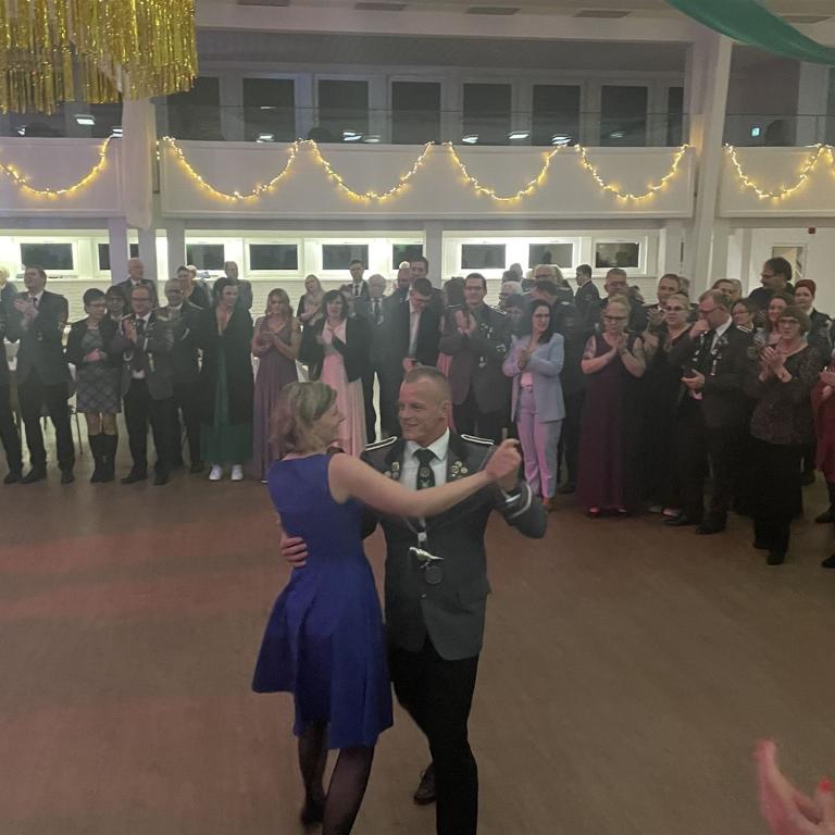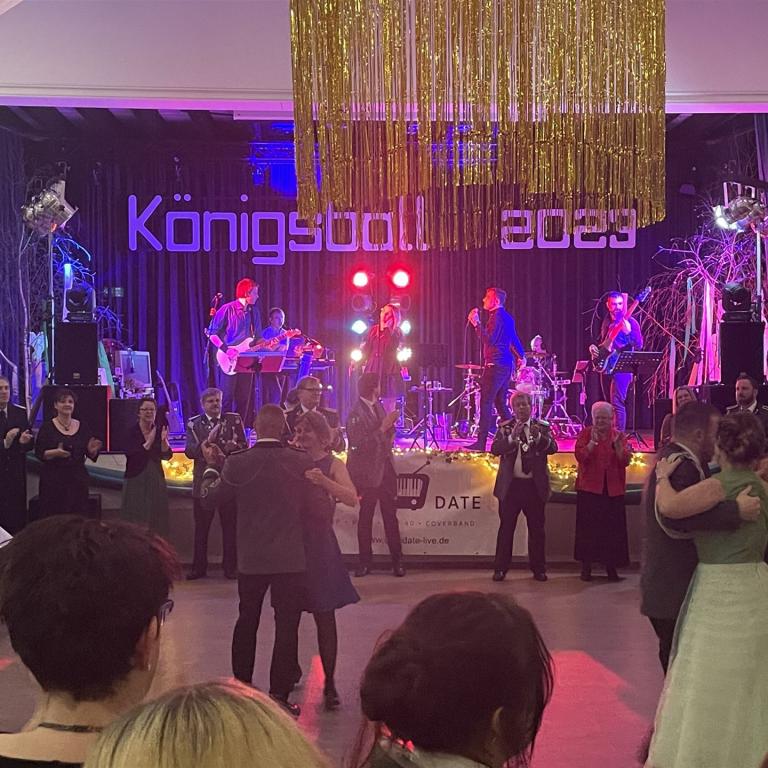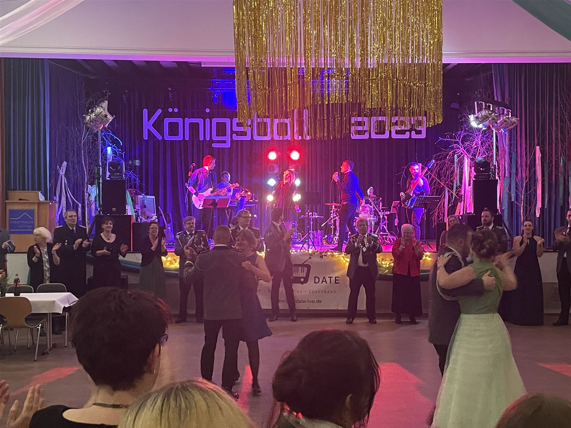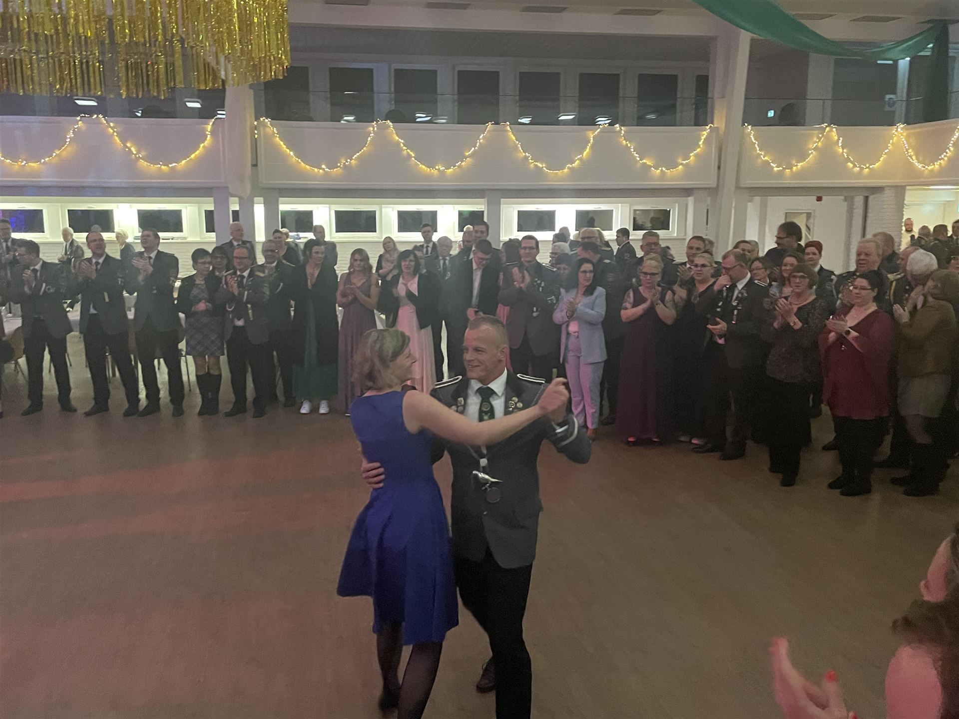 Nach einem „Gut Schuss!“ an die geehrten eröffnete die Majestät schwungvoll die Tanzfläche, die noch bis in die frühen Morgenstunden glühen sollte. Dank „Up to Date“ kamen die Tanzwütigen voll auf ihre Kosten.