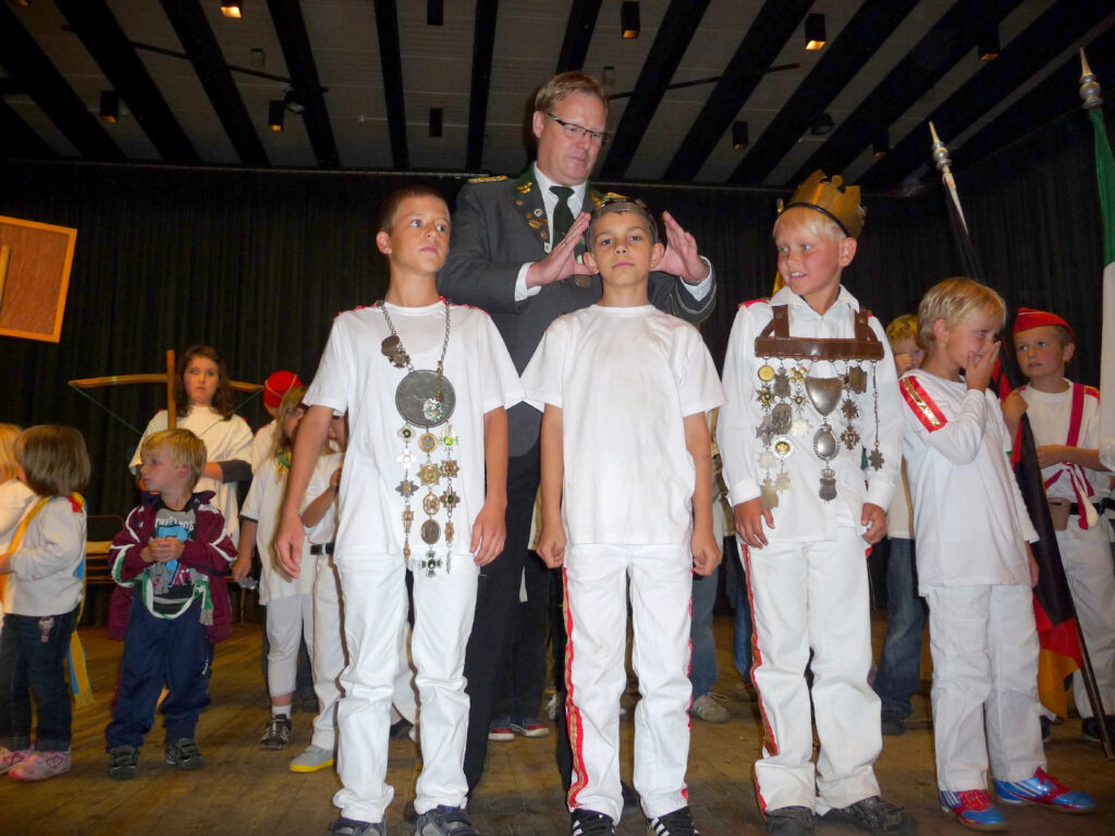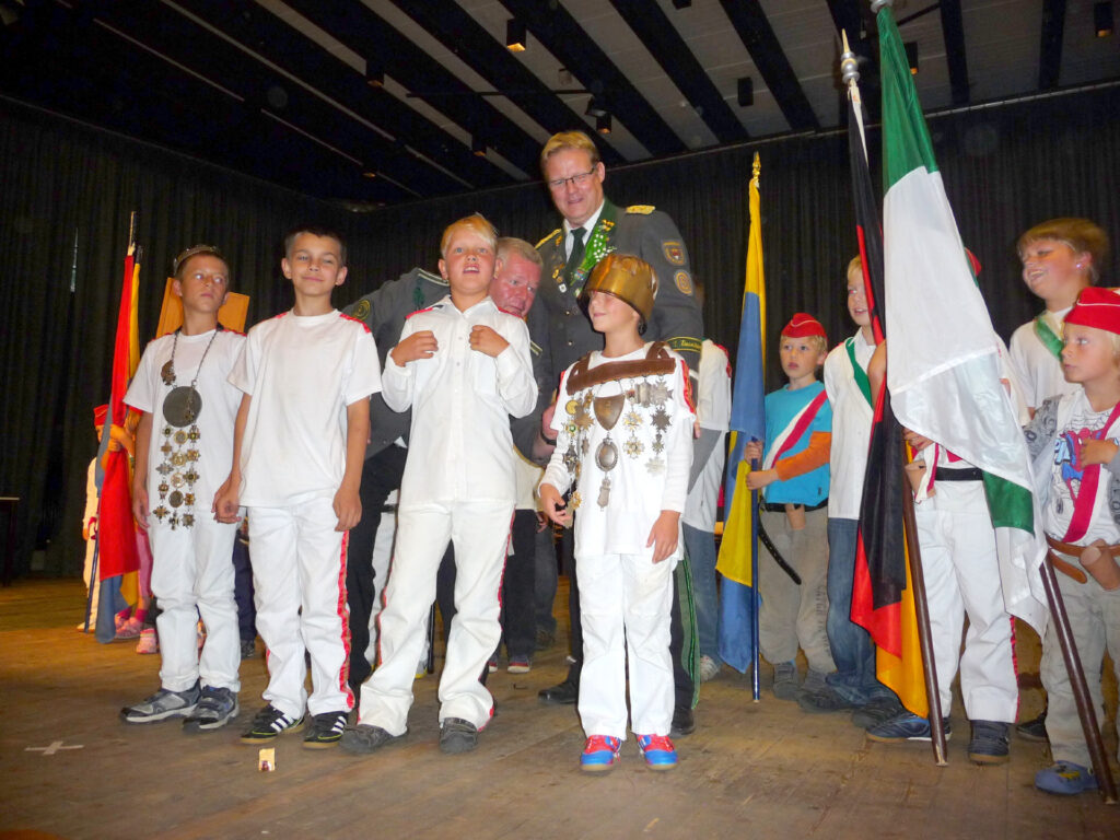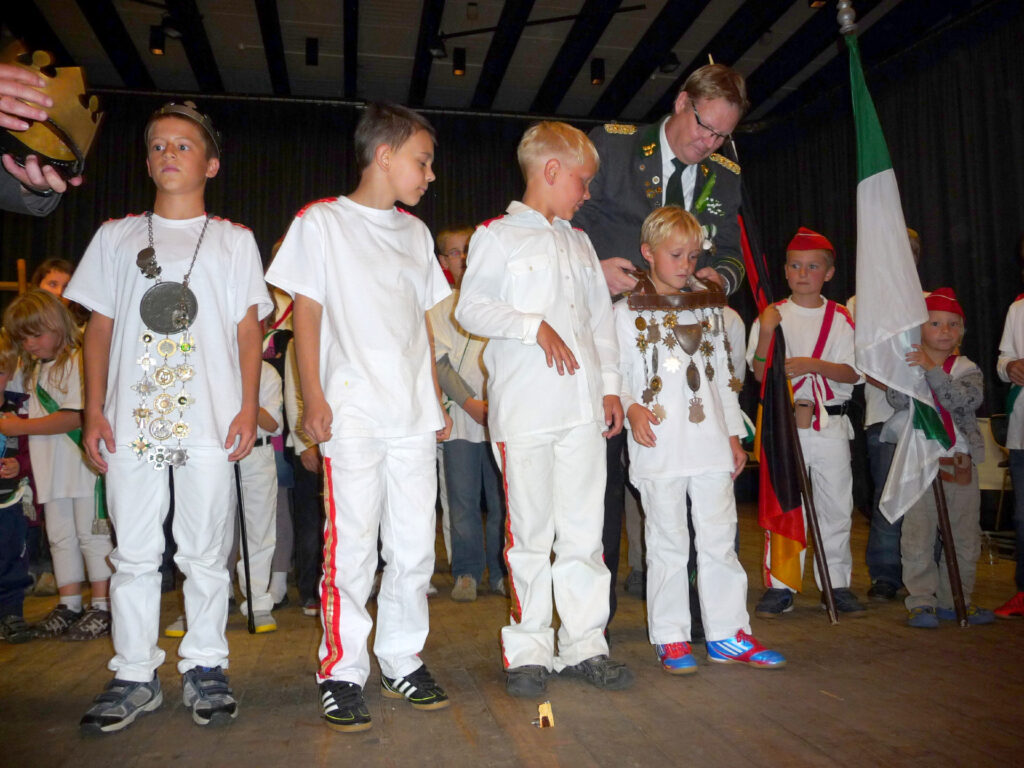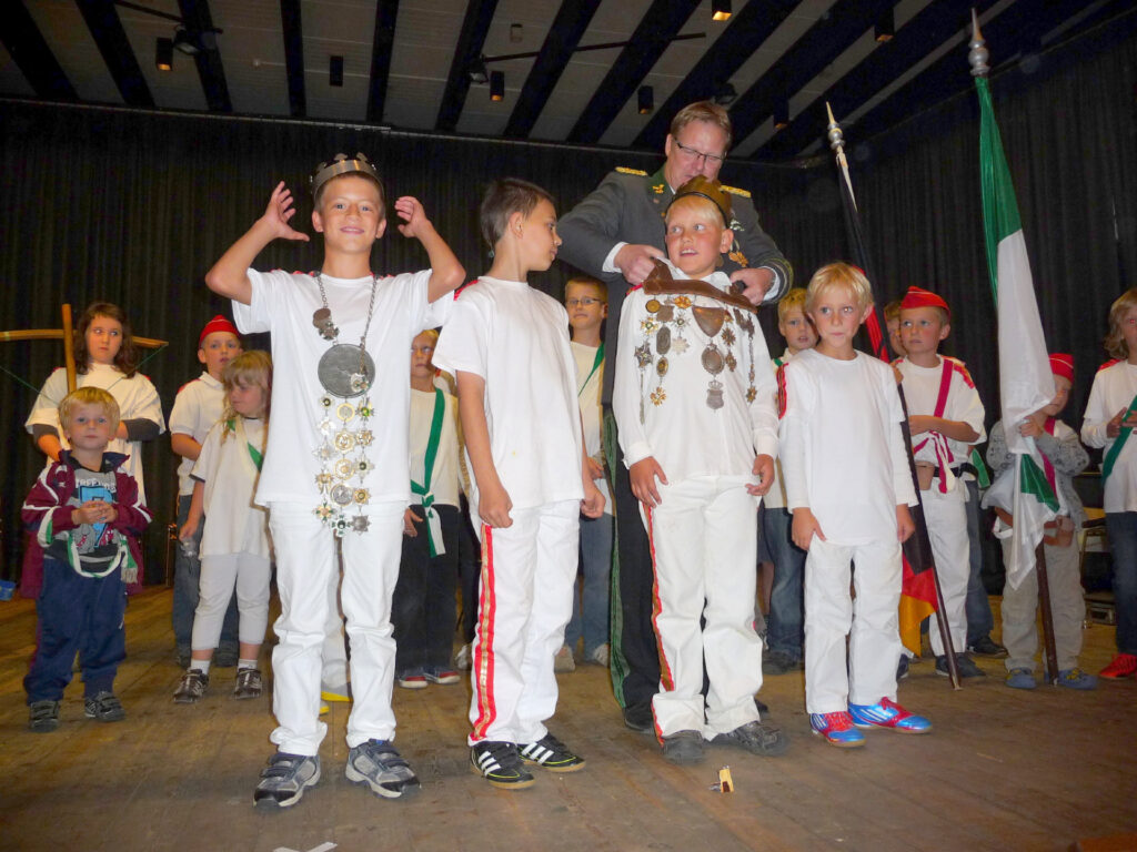 Mit einem Teiler von 32 wurde Mika Bammel zum Kinderschützenkönig proklamiert. Ihm folgte Paul Heitmann mit einem Teiler von 34 und ist somit Kronprinz. Marlon Radke traf das Ziel mit einem Teiler von 58 und erhielt damit das Amt des Adjutanten. Außerdem darf er den Bauernschänke-Pokal bis zum nächsten Kinderschützenfest sein Eigen nennen. Das Amt des Obersten bekleidet Xenia Beckmann, Altschaffer wurde Paul Runge