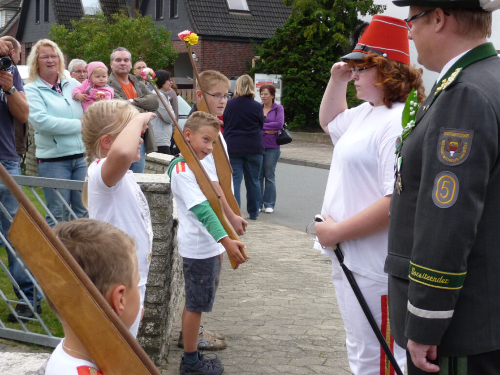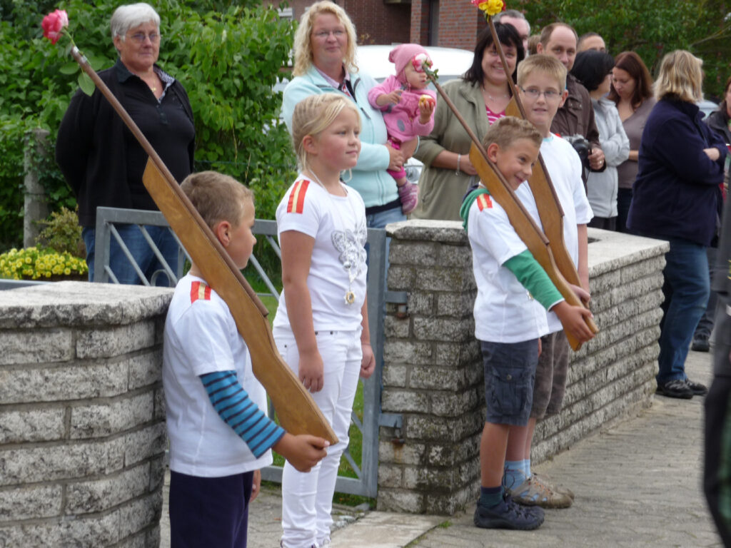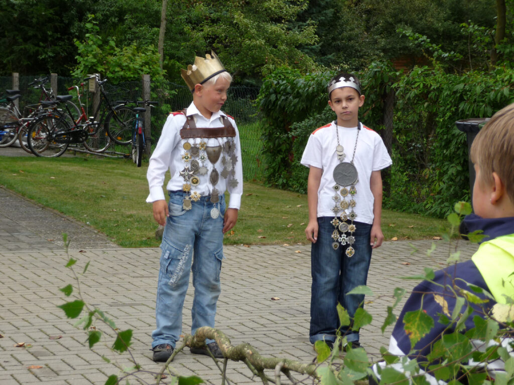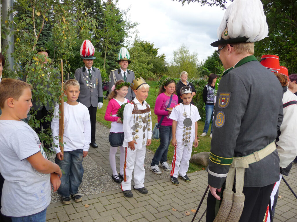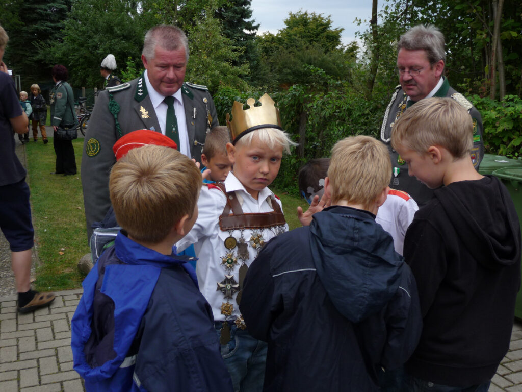 Mit einem Teiler von 32 wurde Mika Bammel zum Kinderschützenkönig proklamiert. Ihm folgte Paul Heitmann mit einem Teiler von 34 und ist somit Kronprinz. Marlon Radke traf das Ziel mit einem Teiler von 58 und erhielt damit das Amt des Adjutanten. Außerdem darf er den Bauernschänke-Pokal bis zum nächsten Kinderschützenfest sein Eigen nennen. Das Amt des Obersten bekleidet Xenia Beckmann, Altschaffer wurde Paul Runge