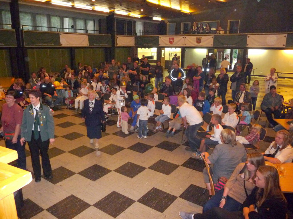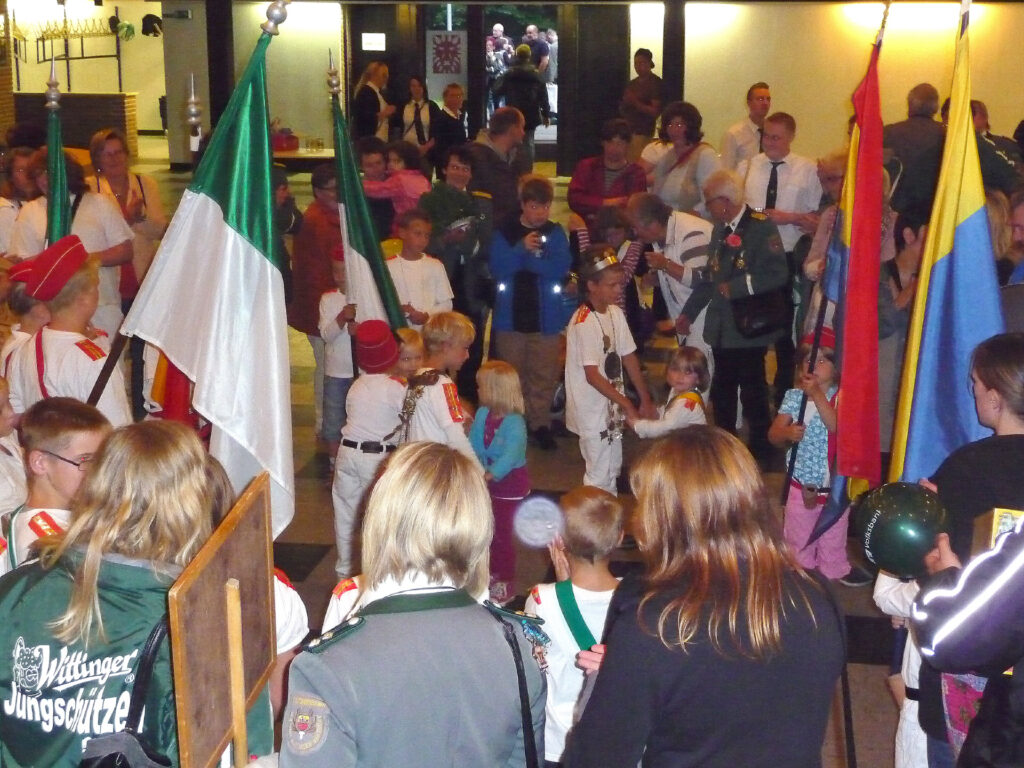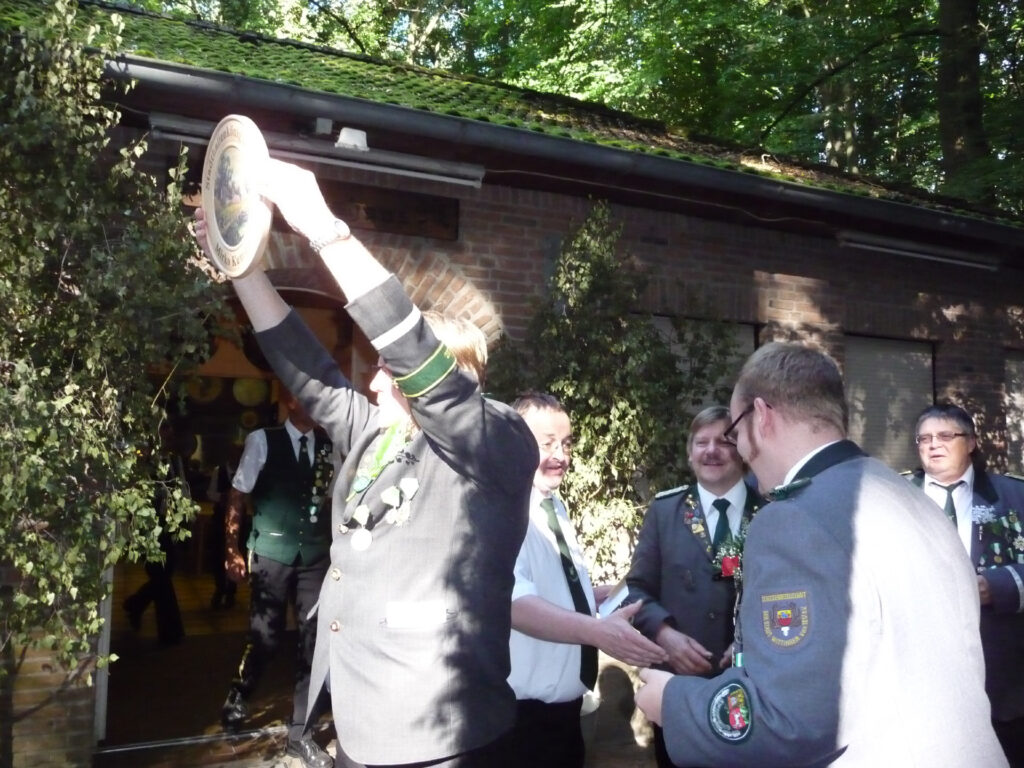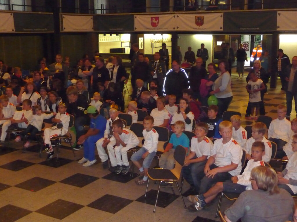 Bei der allerletzten Proklamation der Schützensaison wurde der Titel des „Stadhallenkönigs“ vergeben. Diesen Titel errang Mirko Kummert mit einem Teiler von 31,5. Ihm folgten Klaus-Dieter Neumann (T 41,0) und Jörg Friedrichs (T 76,2). Mirko Kummert ist in diesem Jahr besonders treffsicher. Denn beim Schützenfest an Pfingsten errang er schon den Titel des Jungschützenkönigs.