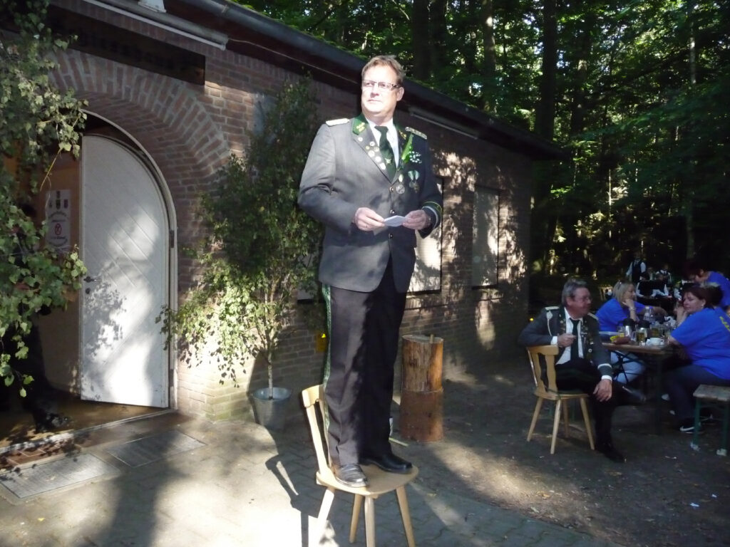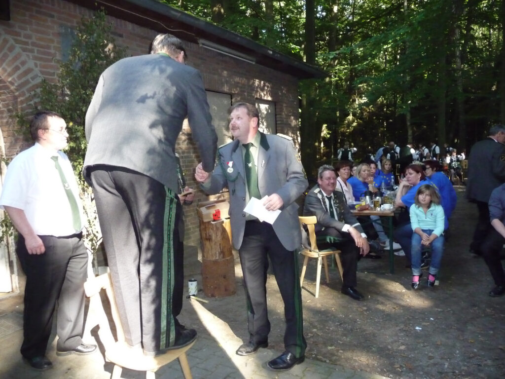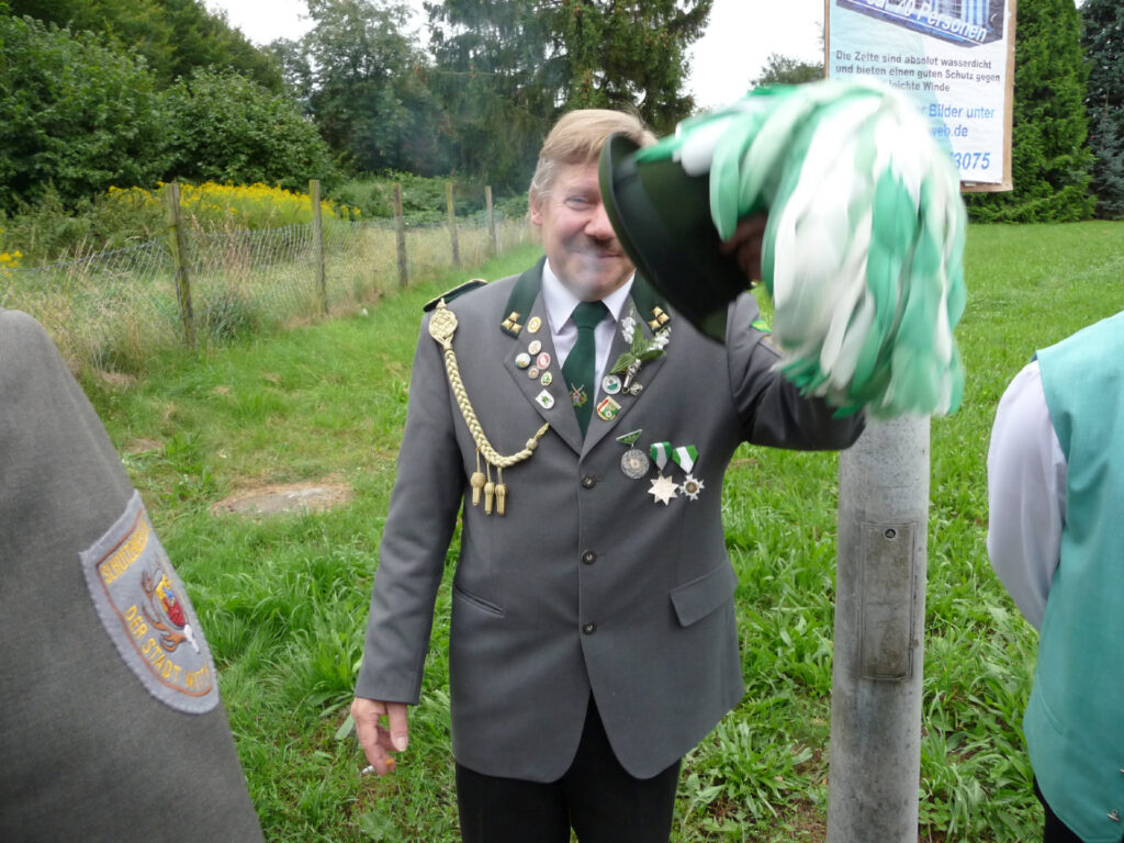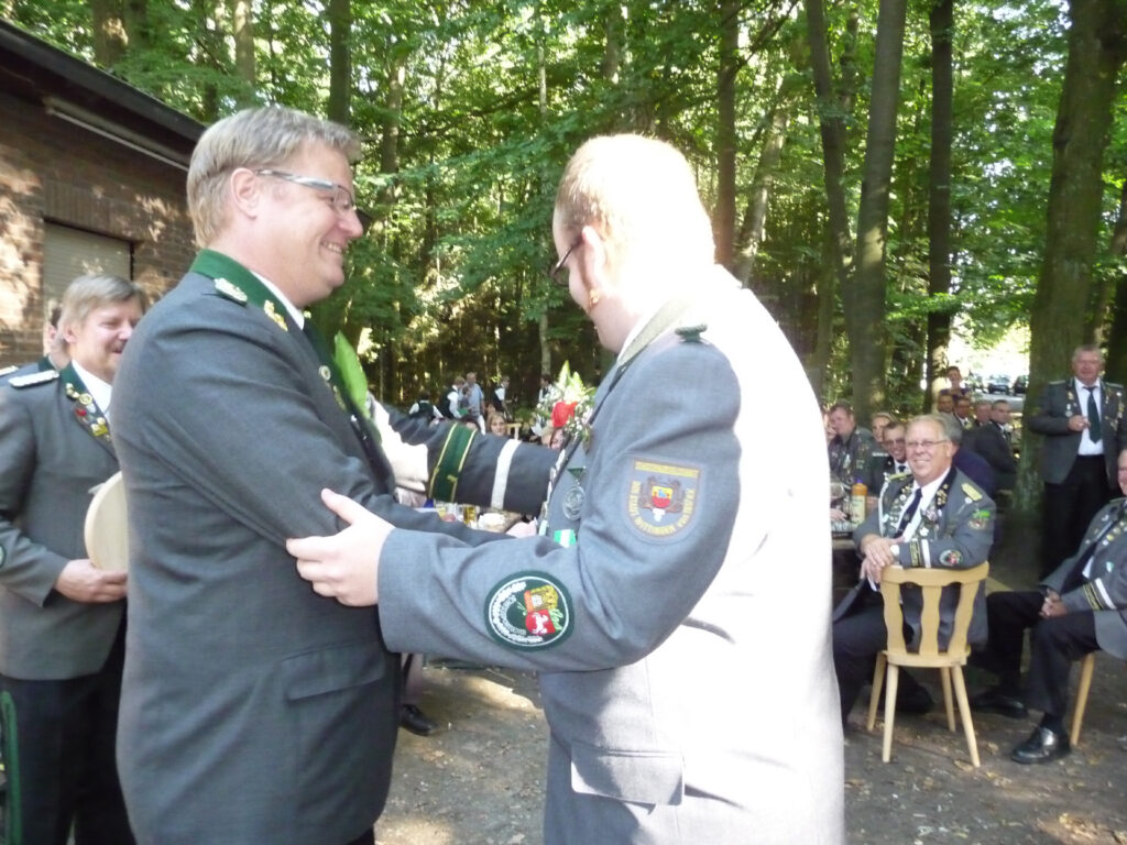Bei der allerletzten Proklamation der Schützensaison wurde der Titel des „Stadhallenkönigs“ vergeben. Diesen Titel errang Mirko Kummert mit einem Teiler von 31,5. Ihm folgten Klaus-Dieter Neumann (T 41,0) und Jörg Friedrichs (T 76,2). Mirko Kummert ist in diesem Jahr besonders treffsicher. Denn beim Schützenfest an Pfingsten errang er schon den Titel des Jungschützenkönigs.
