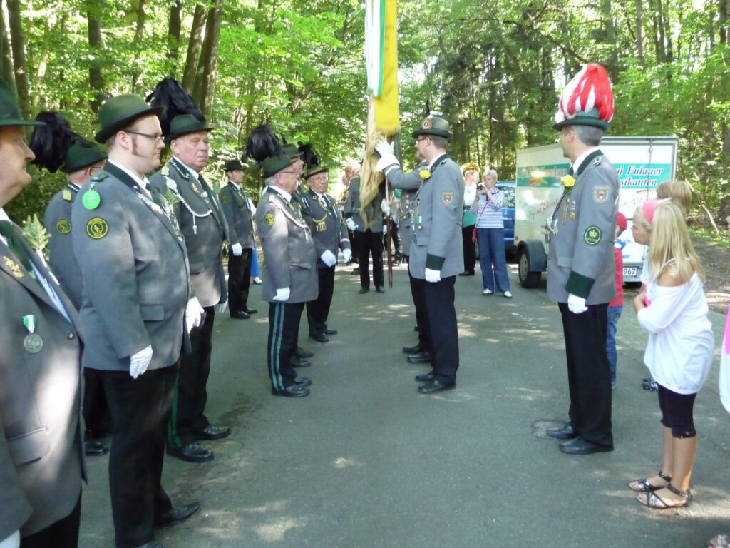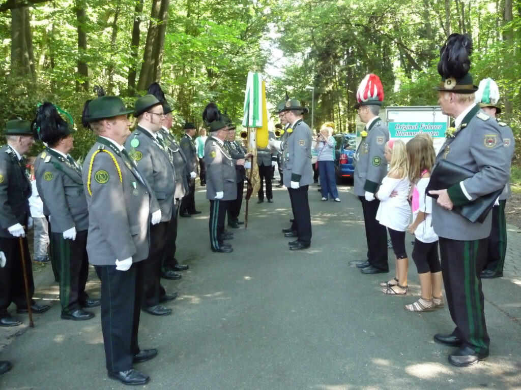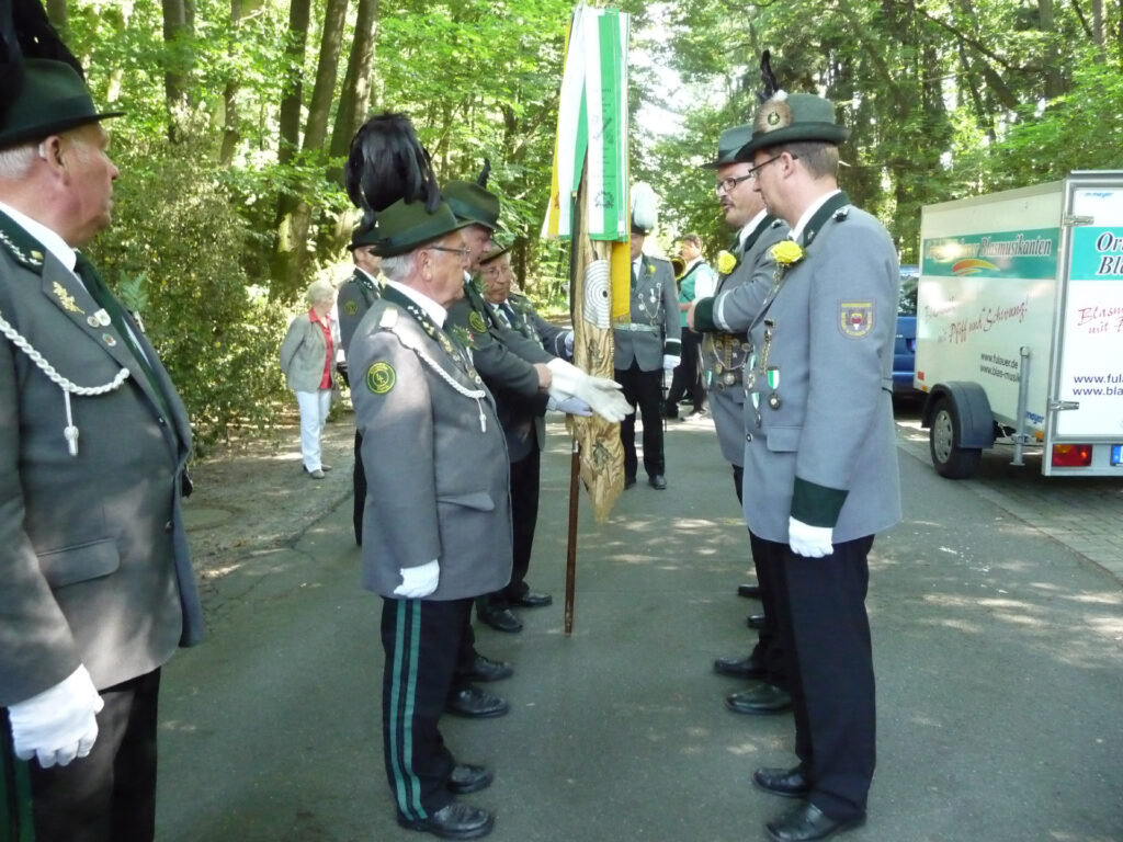 Während des Lustigen Sonntags wurde traditionsgemäß die Fahne des Jägercorps von der zweiten Kompanie in einer feierlichen Zeremonie weiter gegeben. Die vierte Kompanie hat nunmehr die ehrenvolle Aufgabe die Fahne bei allen offiziellen Anlässen ein Jahr lang ehrenvoll zu tragen.